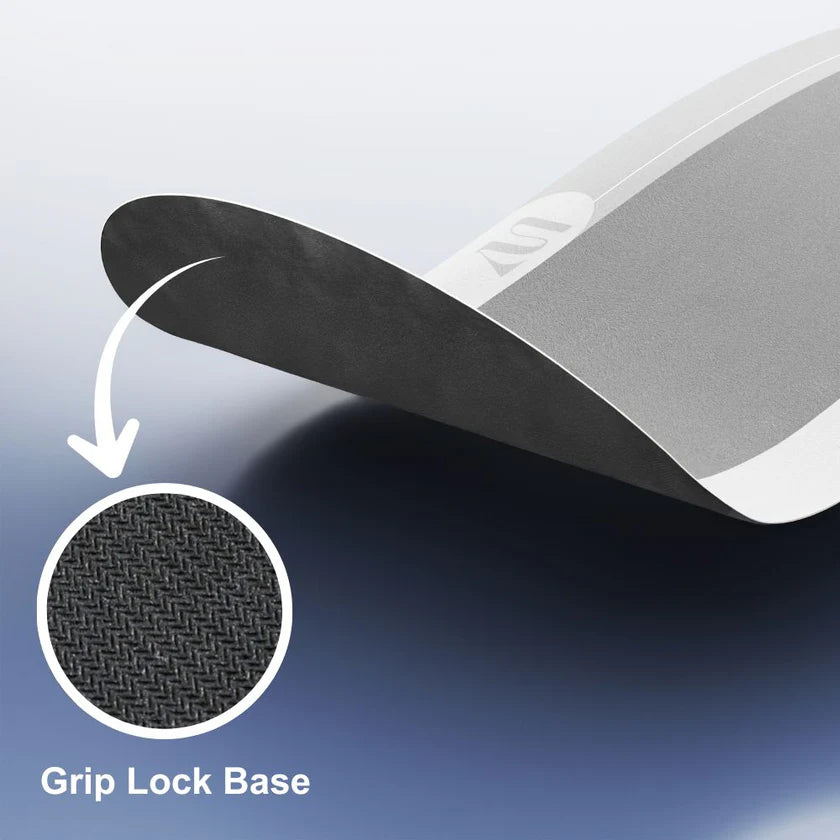 The Grip-Lock Base keeps your mat anchored firmly to any surface — tile, wood, vinyl, or anything in between.