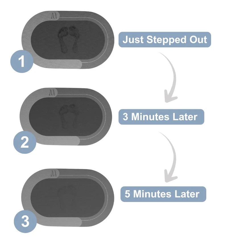 The Zorby Mat dries within minutes. It absorbs water instantly and doesn’t stay soggy like traditional fabric mats.